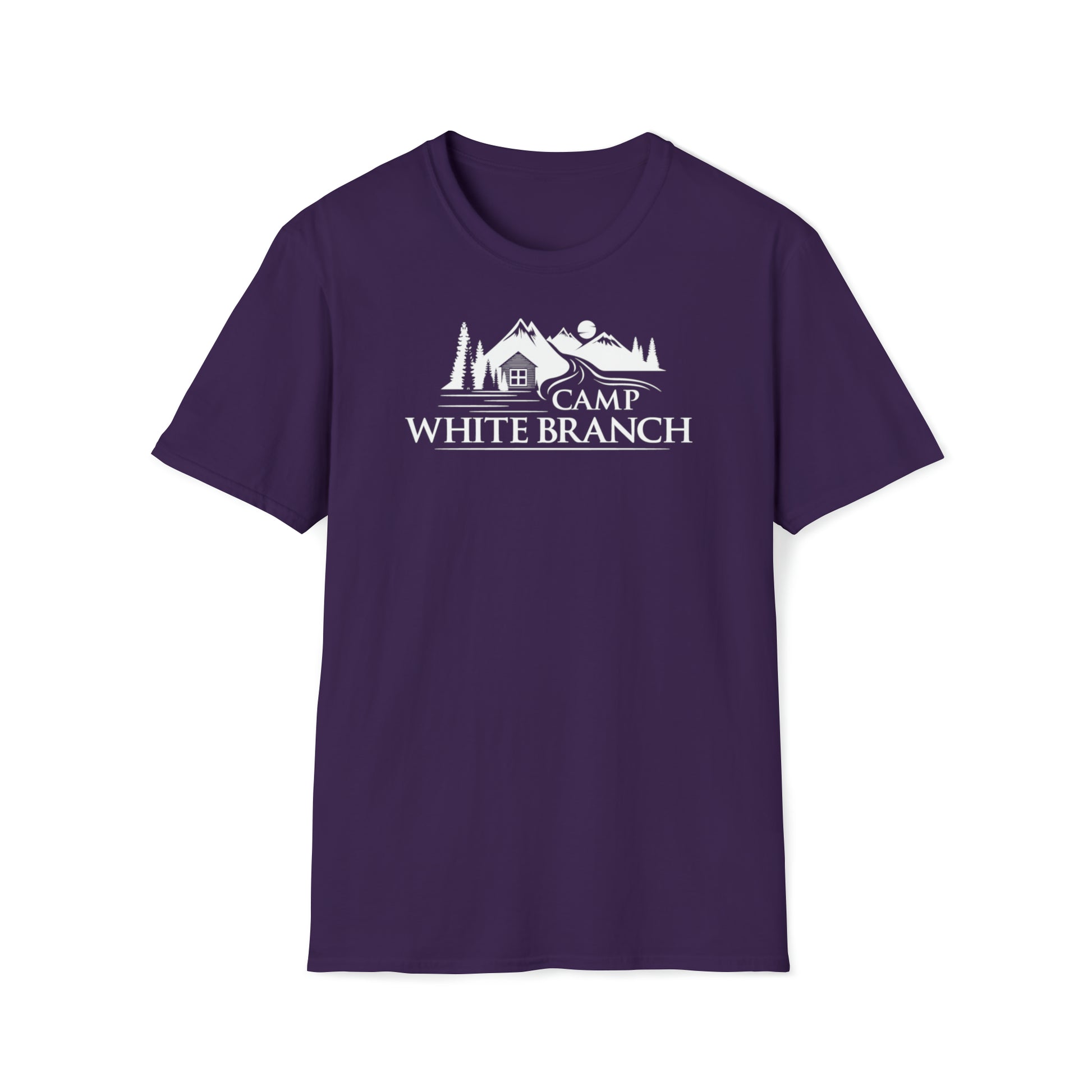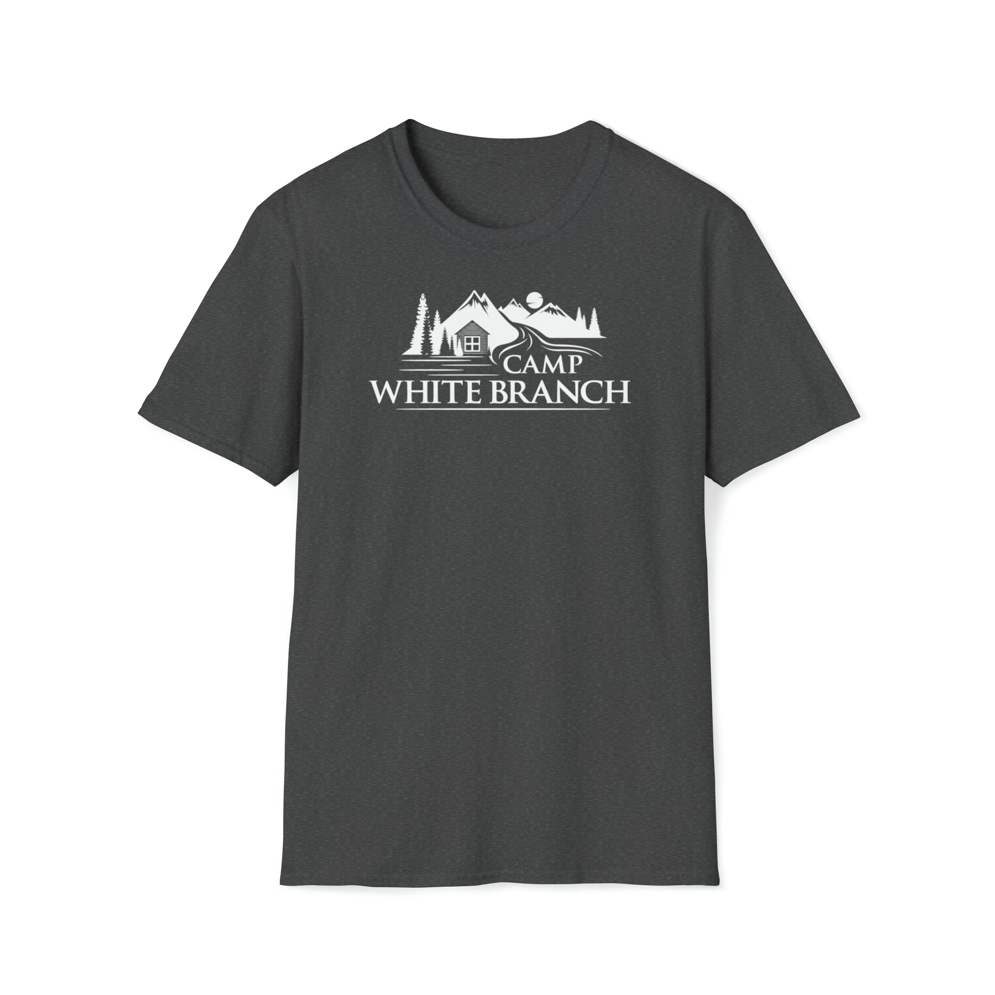 "Camp White Branch" logo printed in white on the front. This unisex soft-style t-shirt puts a new spin on casual comfort. Made from very soft materials, this tee is 100% cotton for solid colors. The shoulders have twill tape for improved durability. There are no side seams. The collar is made with ribbed knitting to prevent curling damage.
