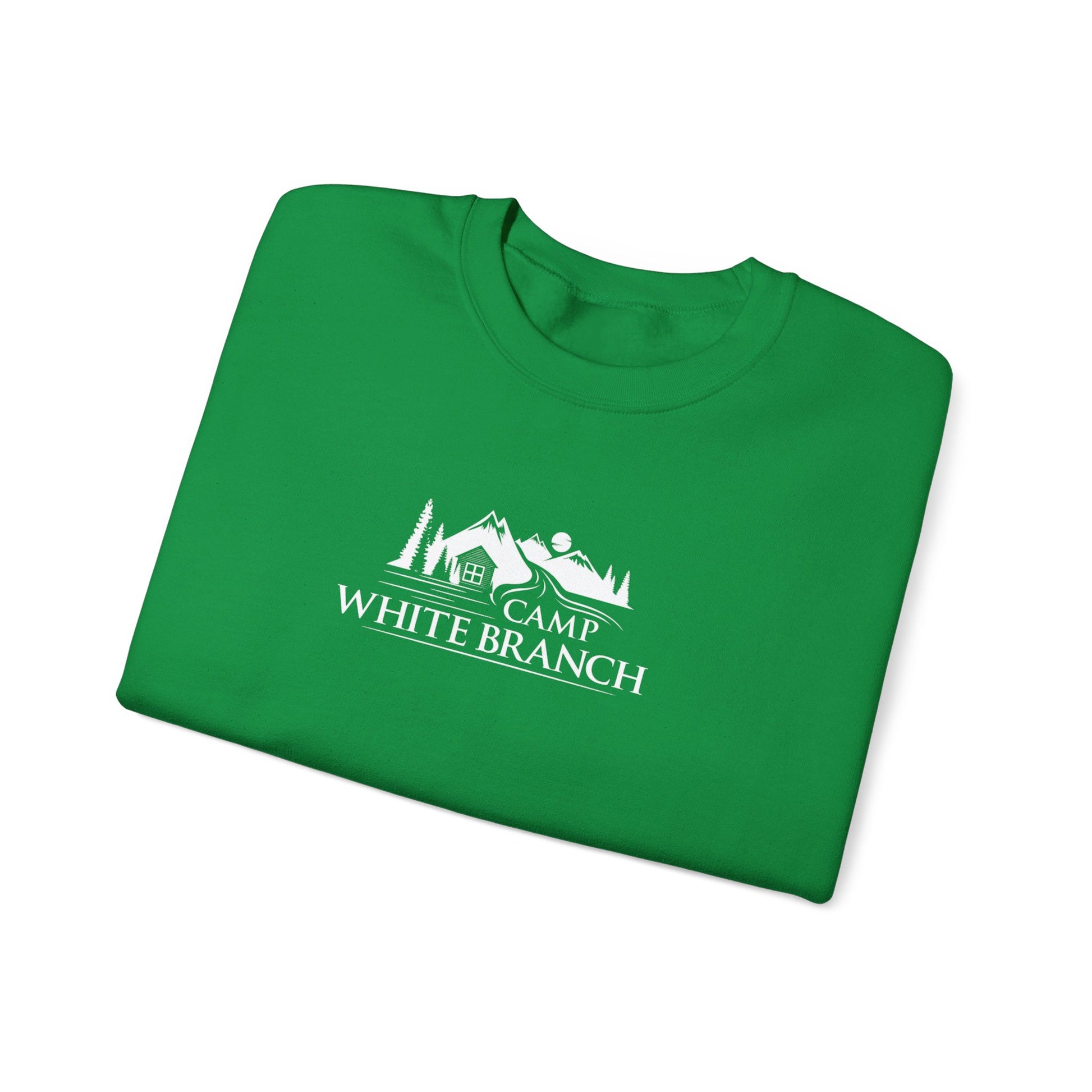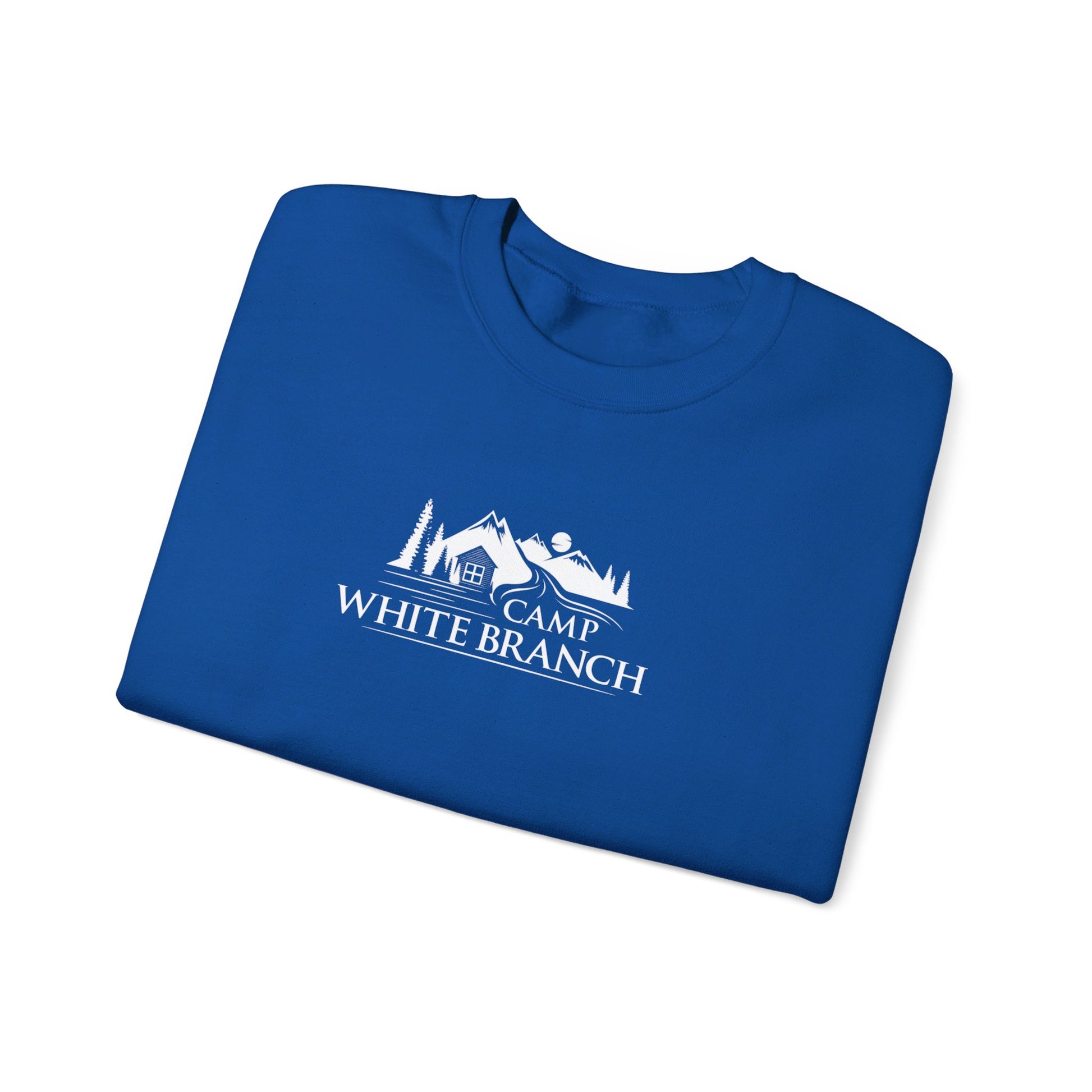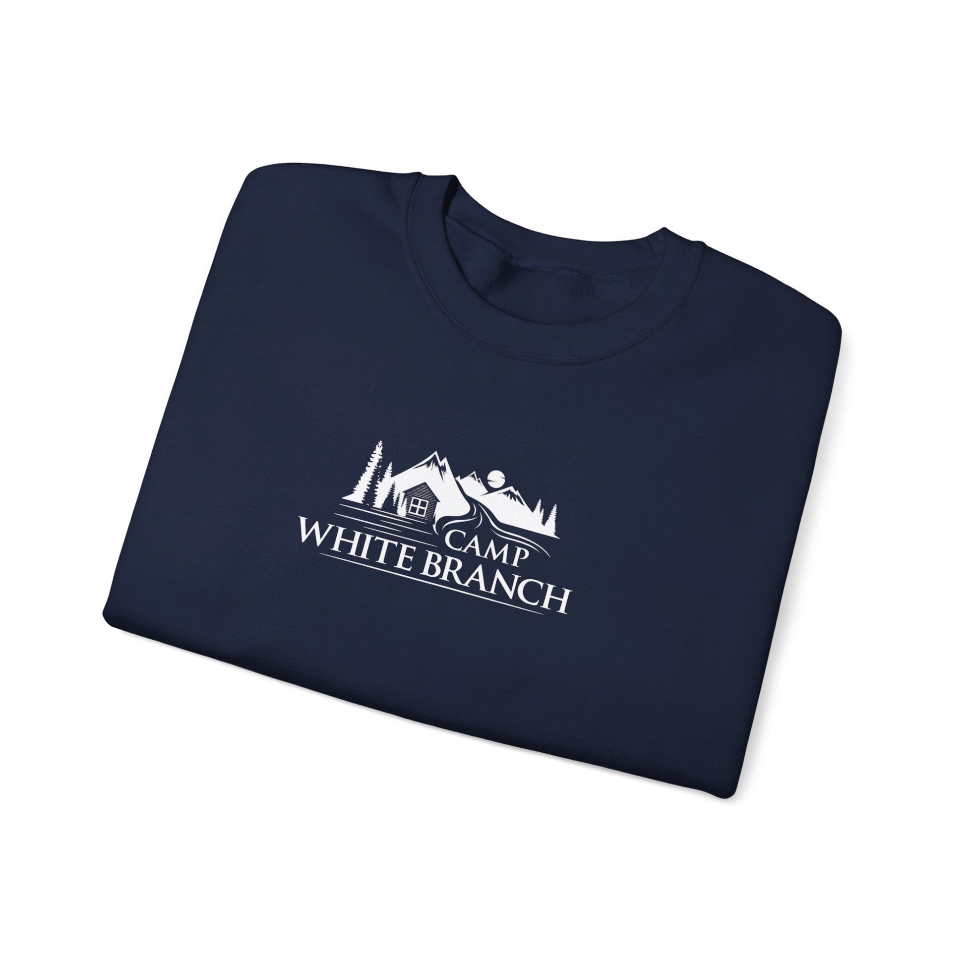Camp White Branch printed in white on the front. Ideal for any situation, a unisex heavy blend crewneck sweatshirt is pure comfort. These garments are made from polyester and cotton. This combination helps designs come out looking fresh and beautiful. The collar is ribbed knit, so it retains its shape even after washing. There are no itchy side seams on these sweaters.
