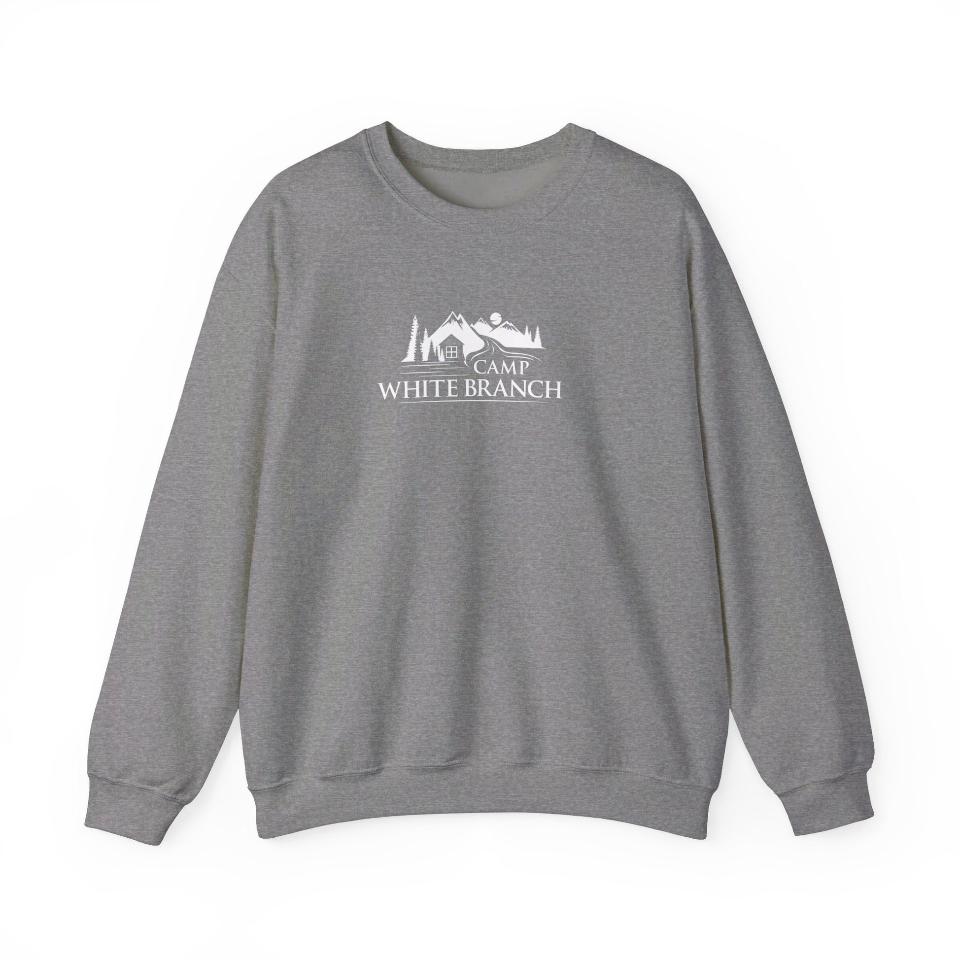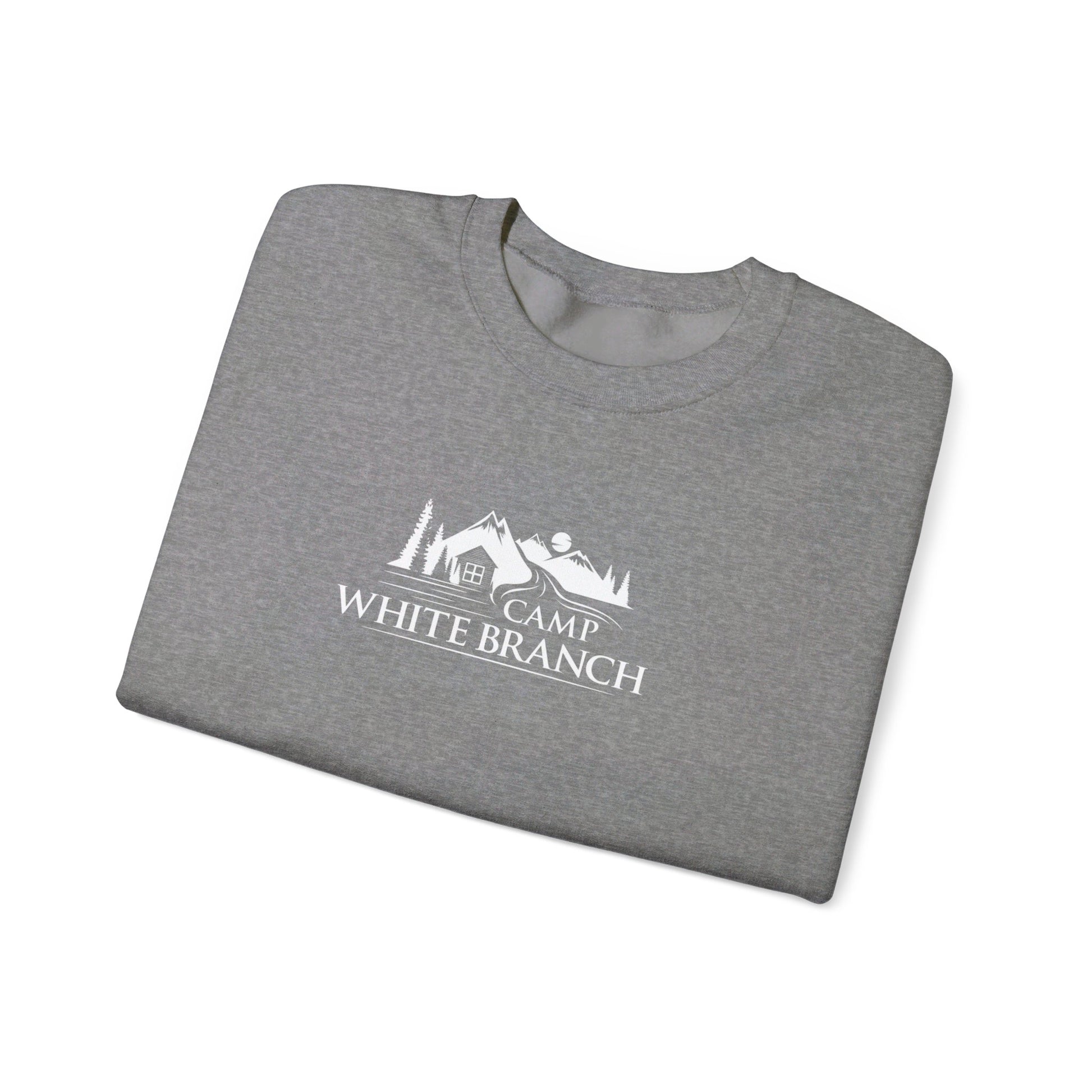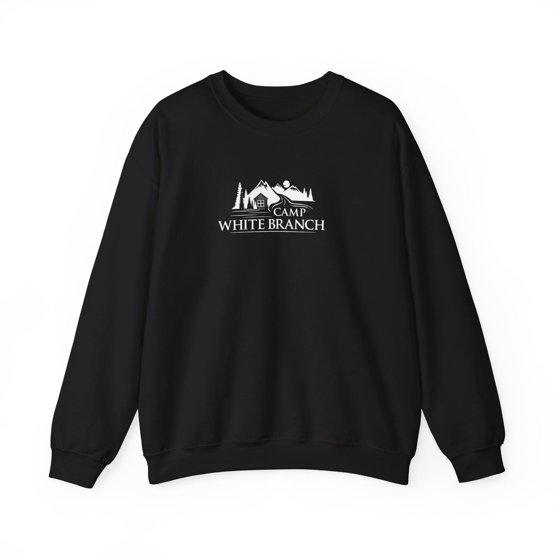 Camp White Branch printed in white on the front. Ideal for any situation, a unisex heavy blend crewneck sweatshirt is pure comfort. These garments are made from polyester and cotton. This combination helps designs come out looking fresh and beautiful. The collar is ribbed knit, so it retains its shape even after washing. There are no itchy side seams on these sweaters.