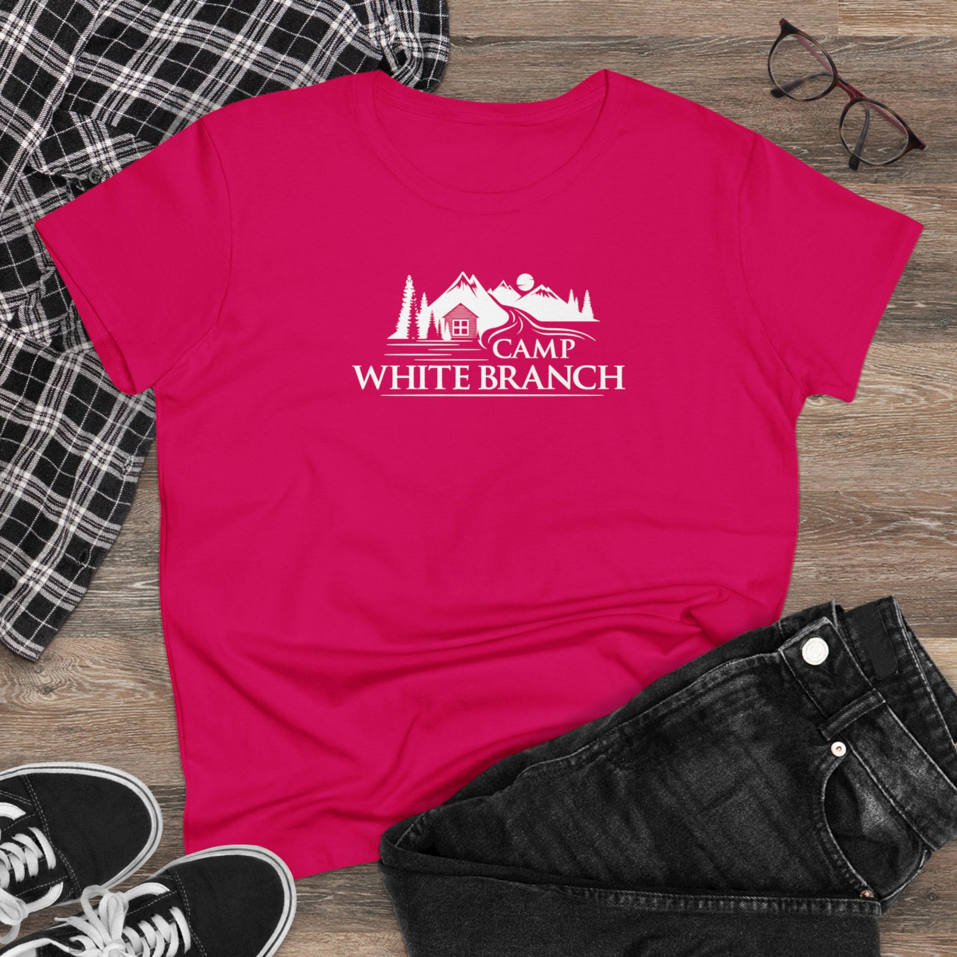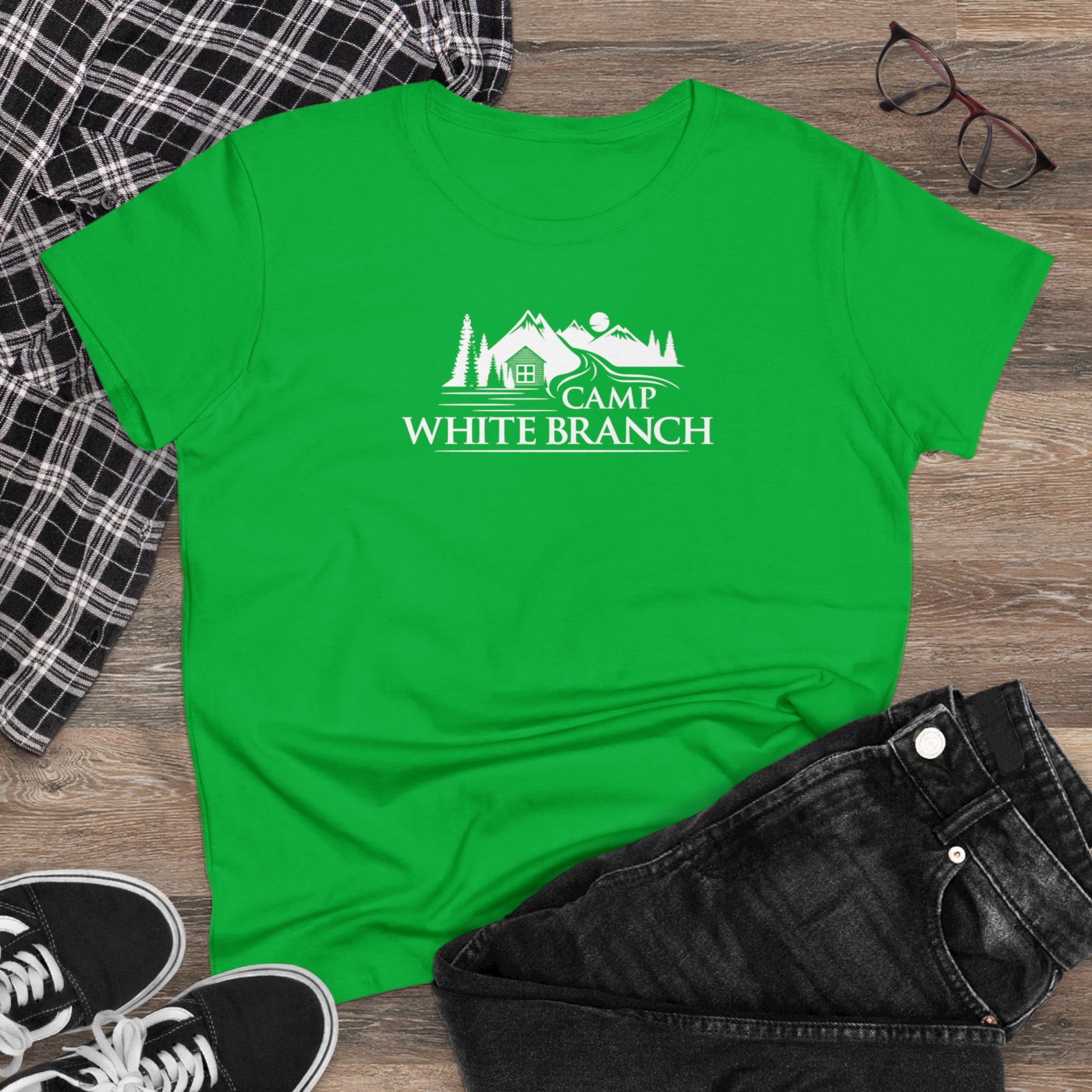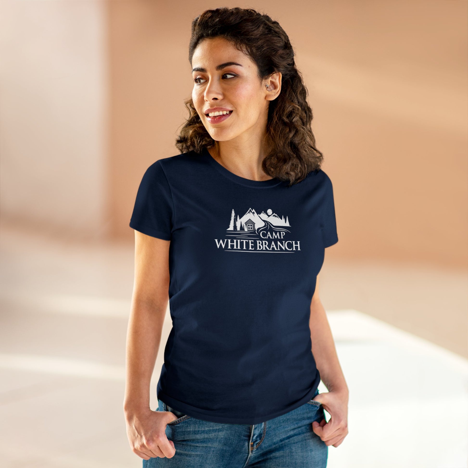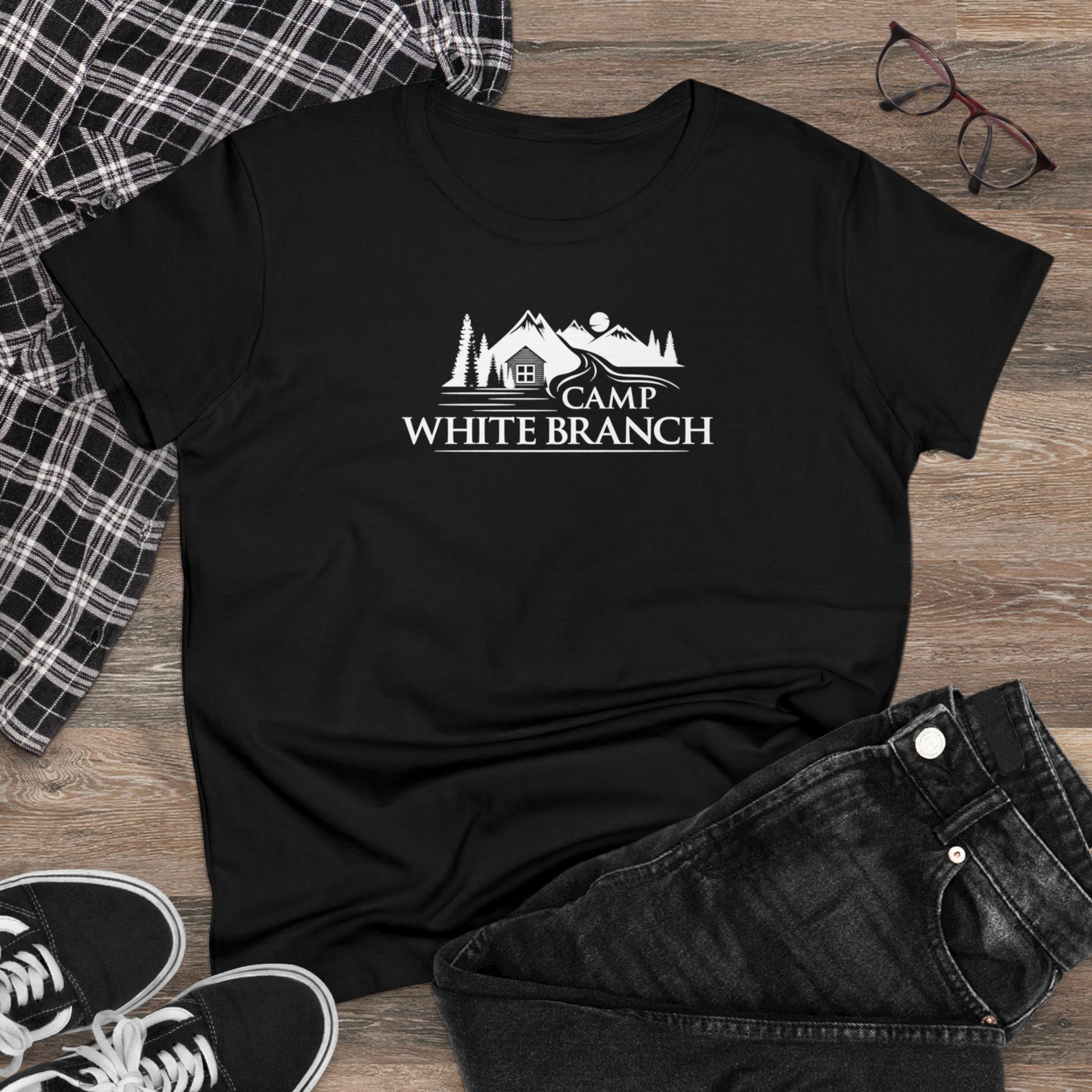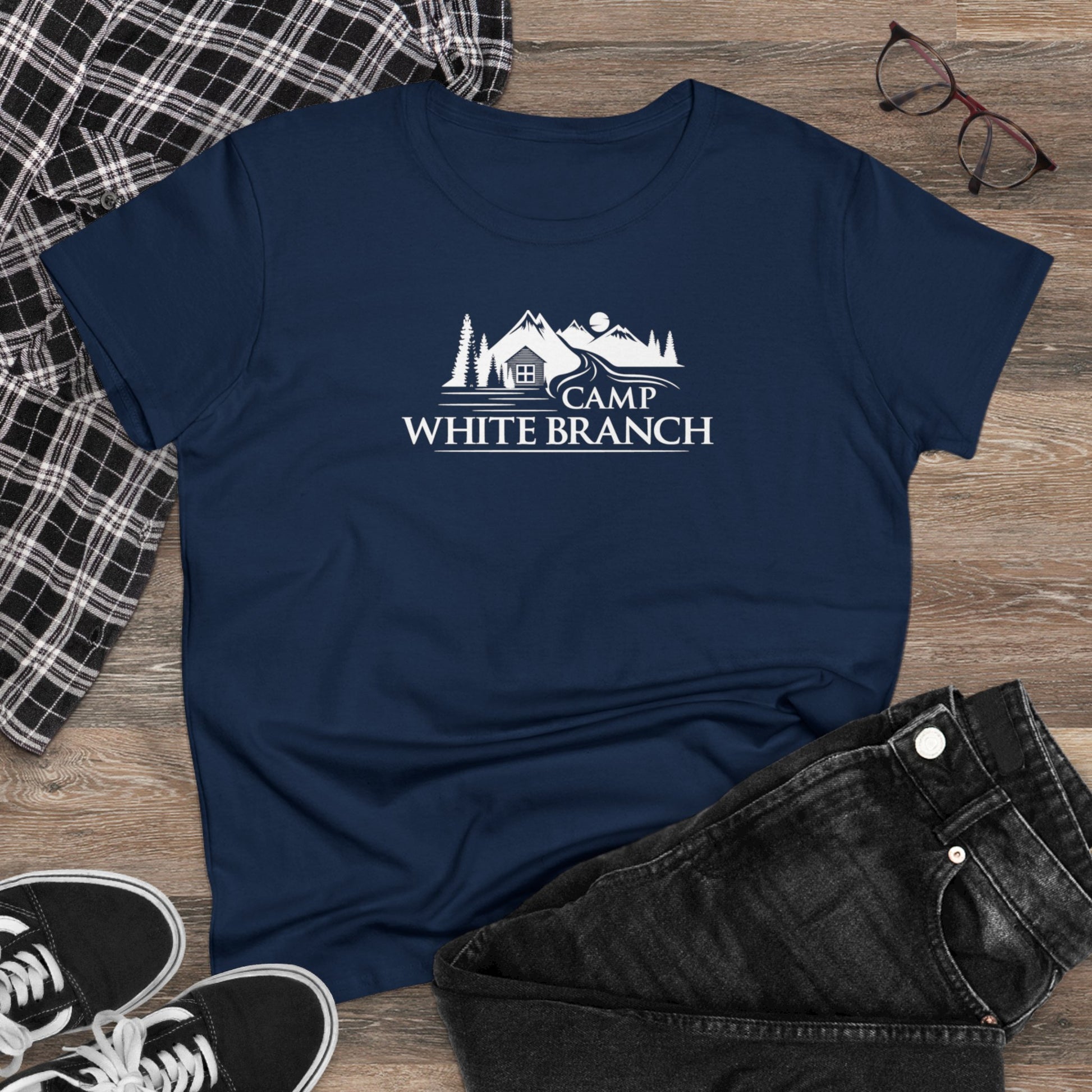 Camp White Branch printed on the front in white. What’s better than a soft, light cotton, quality t-shirt in your wardrobe? This comfy, contoured 100% cotton tee offers a semi-fitted silhouette and is pre-shrunk to ensure it stays a staple for longer. It features cap sleeves and a taped neck and shoulders.